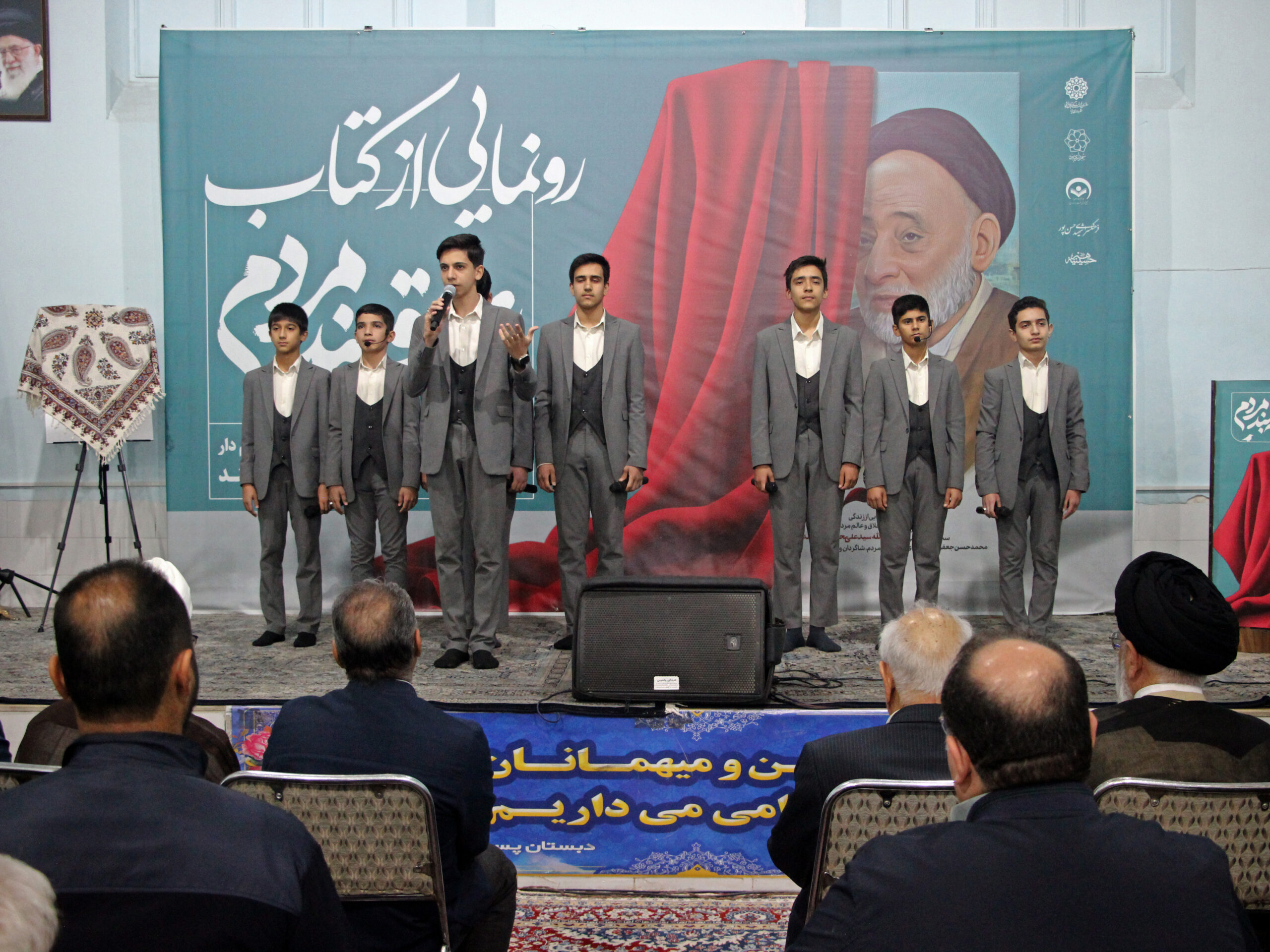 سخنرانی آیت الله مدرسی امام جمعه بخش مرکزی ،اجرای گروه سرود شمیم ولایت و مصاحبه با علی اکبر رئوف مدیر جامعه تعلیمات اسلامی یزد و نویسنده اثر از بخشهای مختلف این برنامه بود.