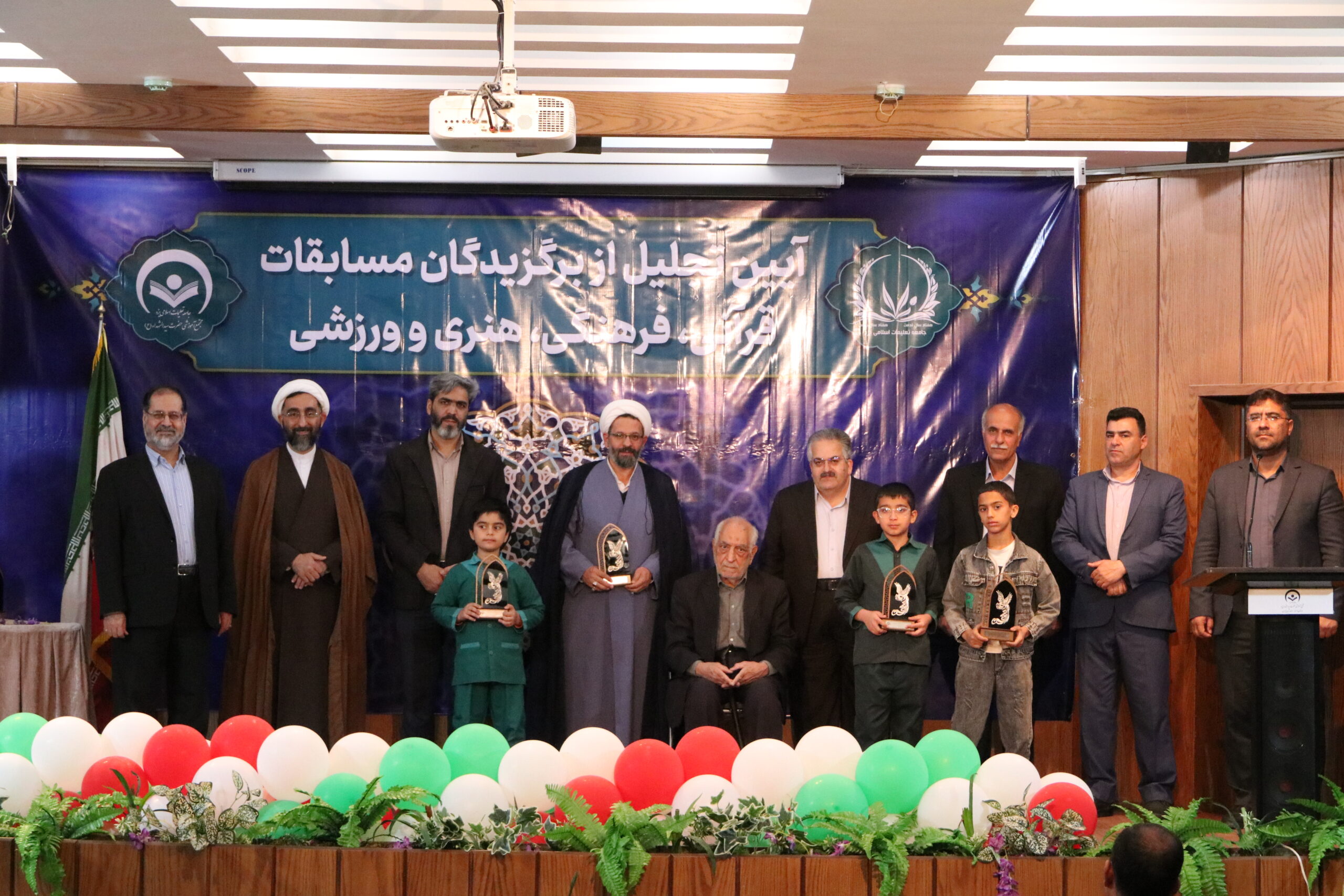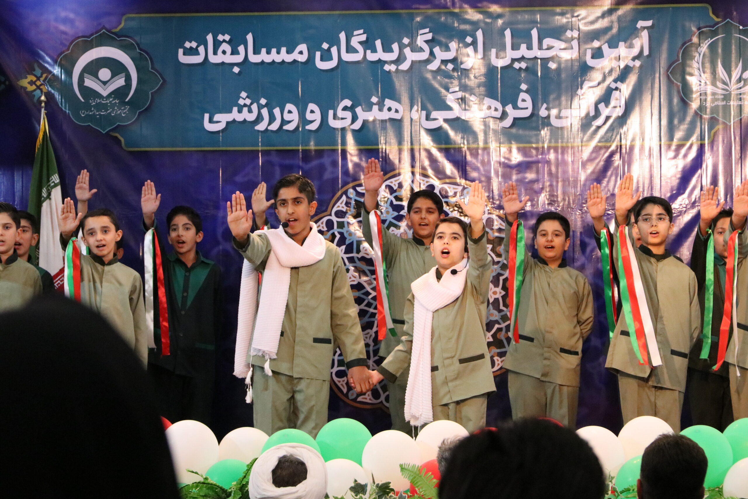 آیین تجلیل از برگزیدگان مسابقات قرآنی، فرهنگی، هنری و ورزشی مجتمع آموزشی حضرت سیدالشهدا علیه السلام در دبستان پسرانه شهید چمران برگزار شد.